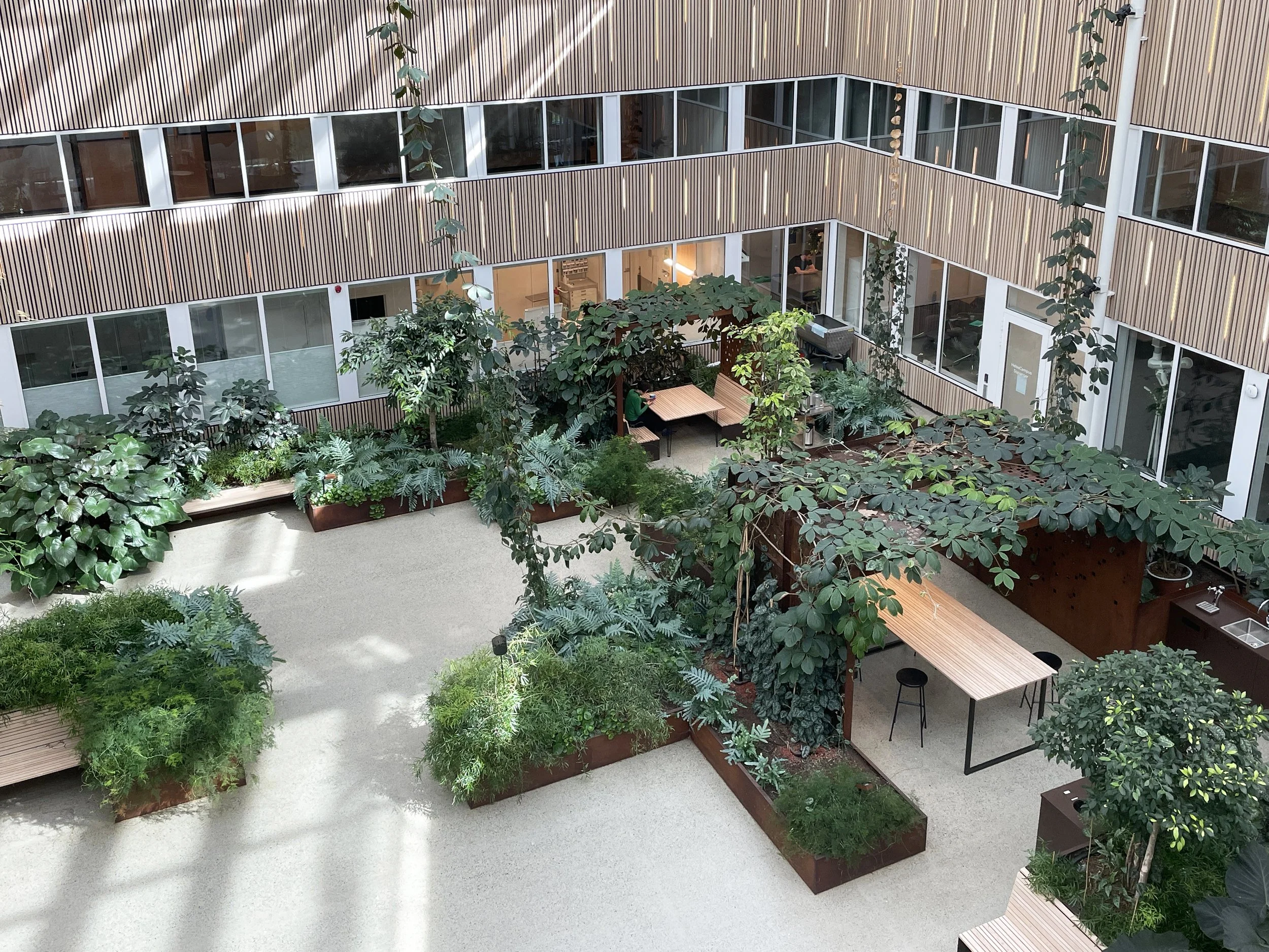 I oppgraderingen av et atrium i Stavanger innovasjonspark var målet å skape et identitetsskapende grep som inviterer til pauser og opphold i et frodig atrium.