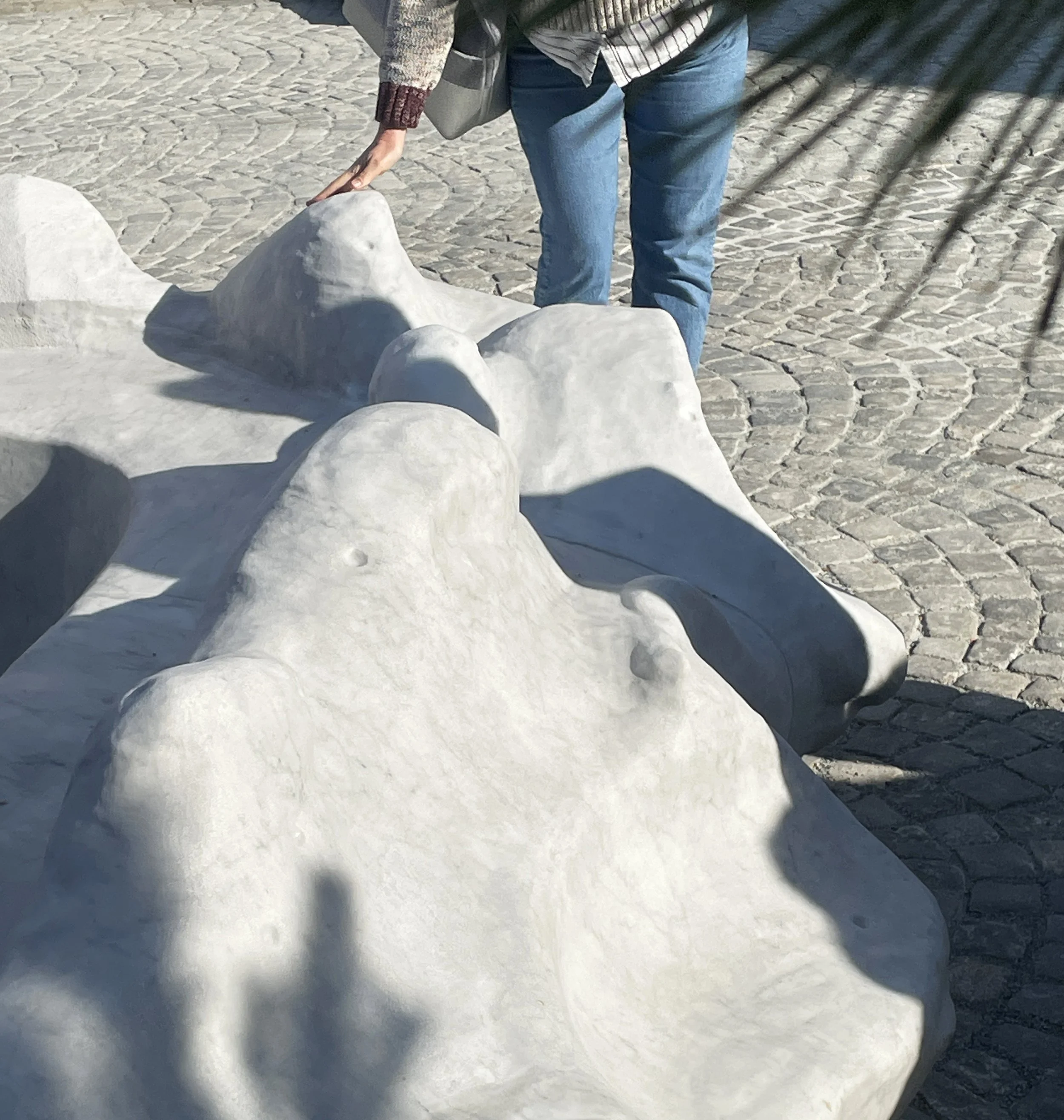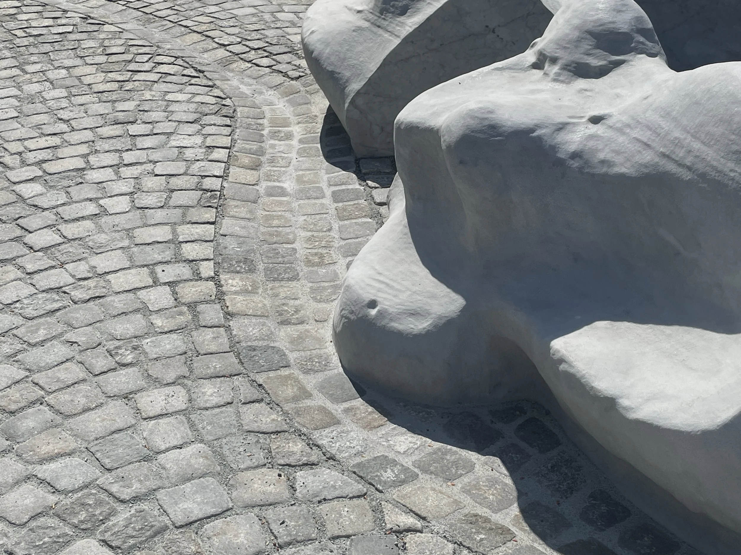 De to skulpturene omslutter et åpent rom i midten, som både kan oppleves som et tomrom, men også et sted for sosiale samlinger og arrangementer.