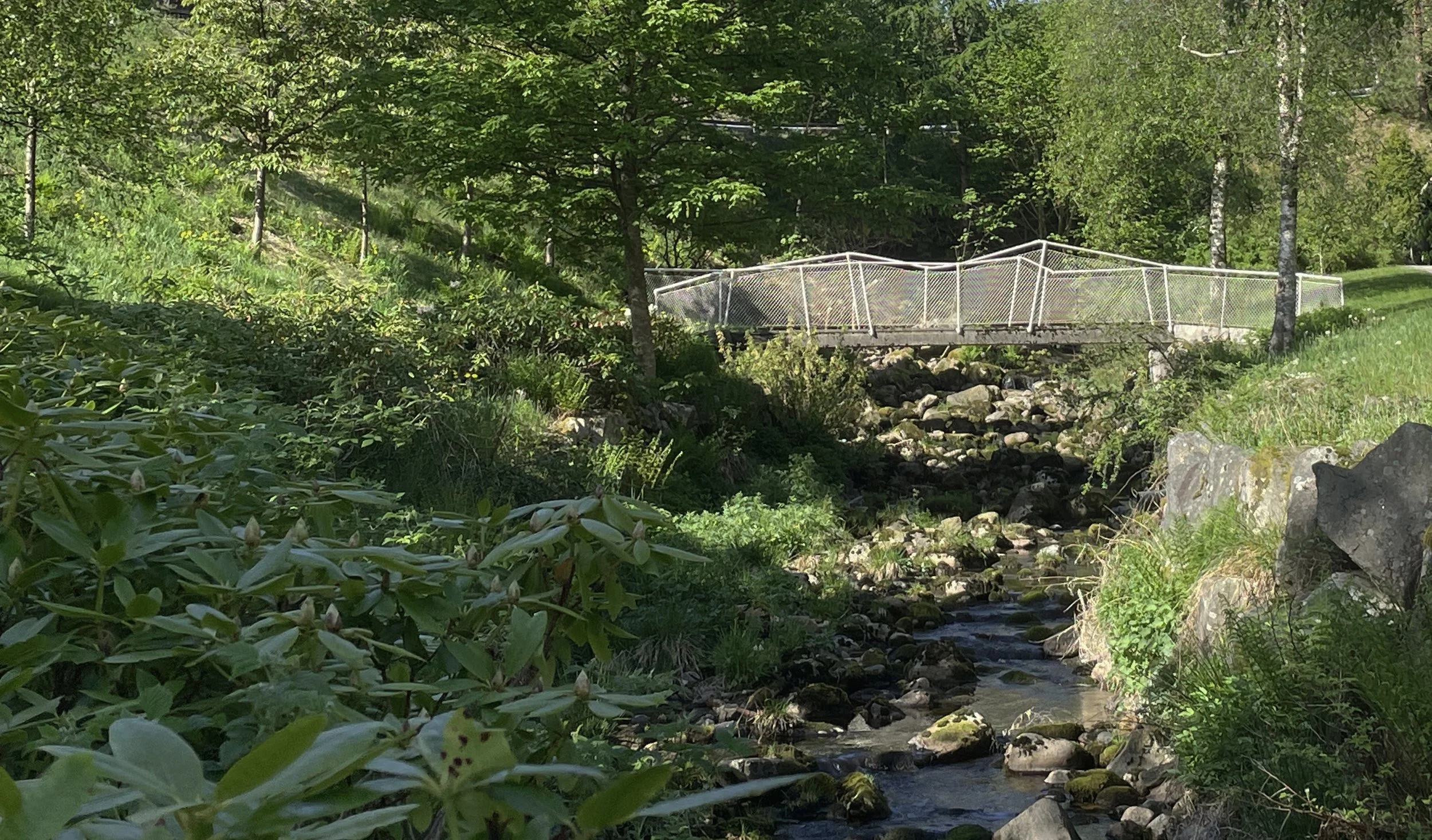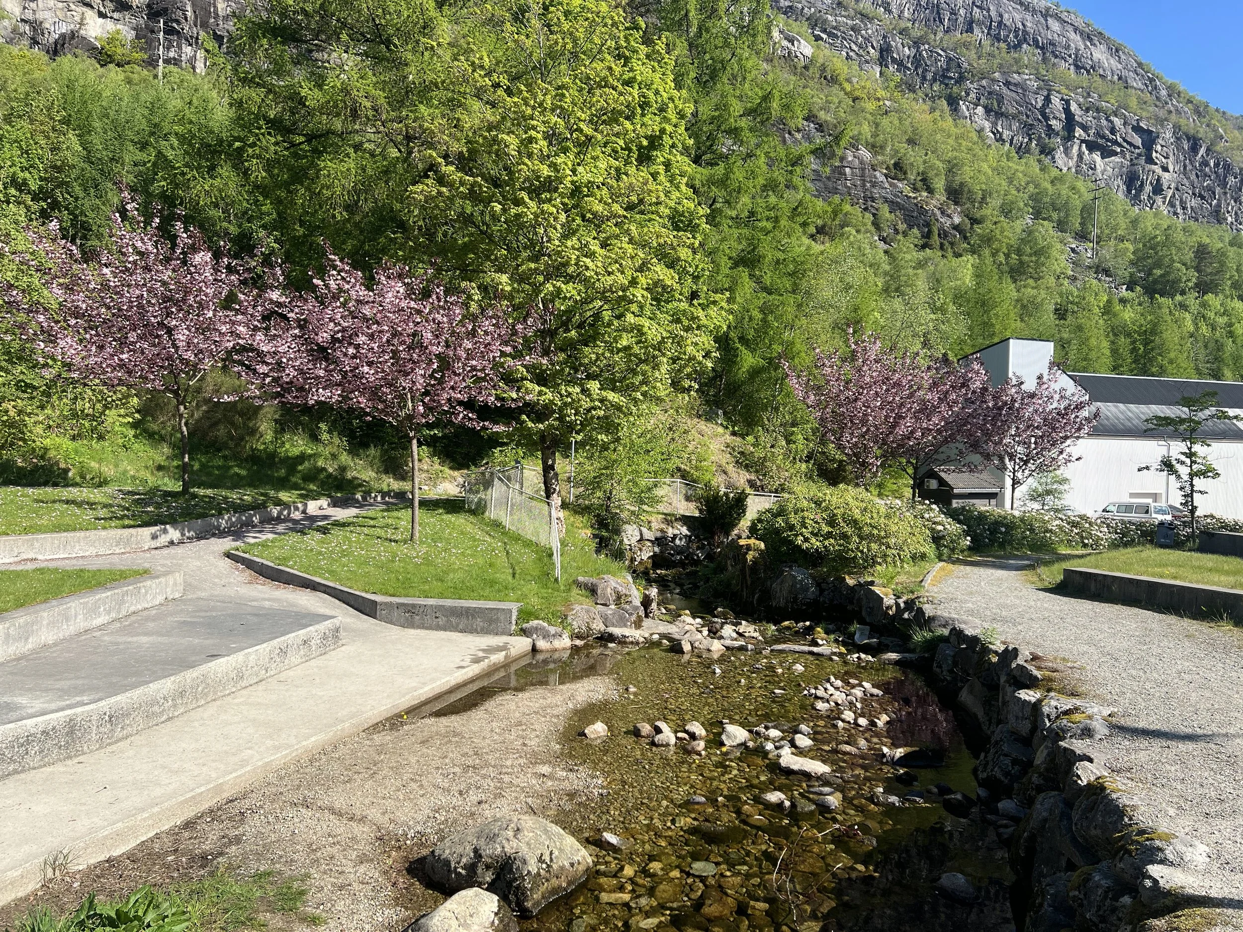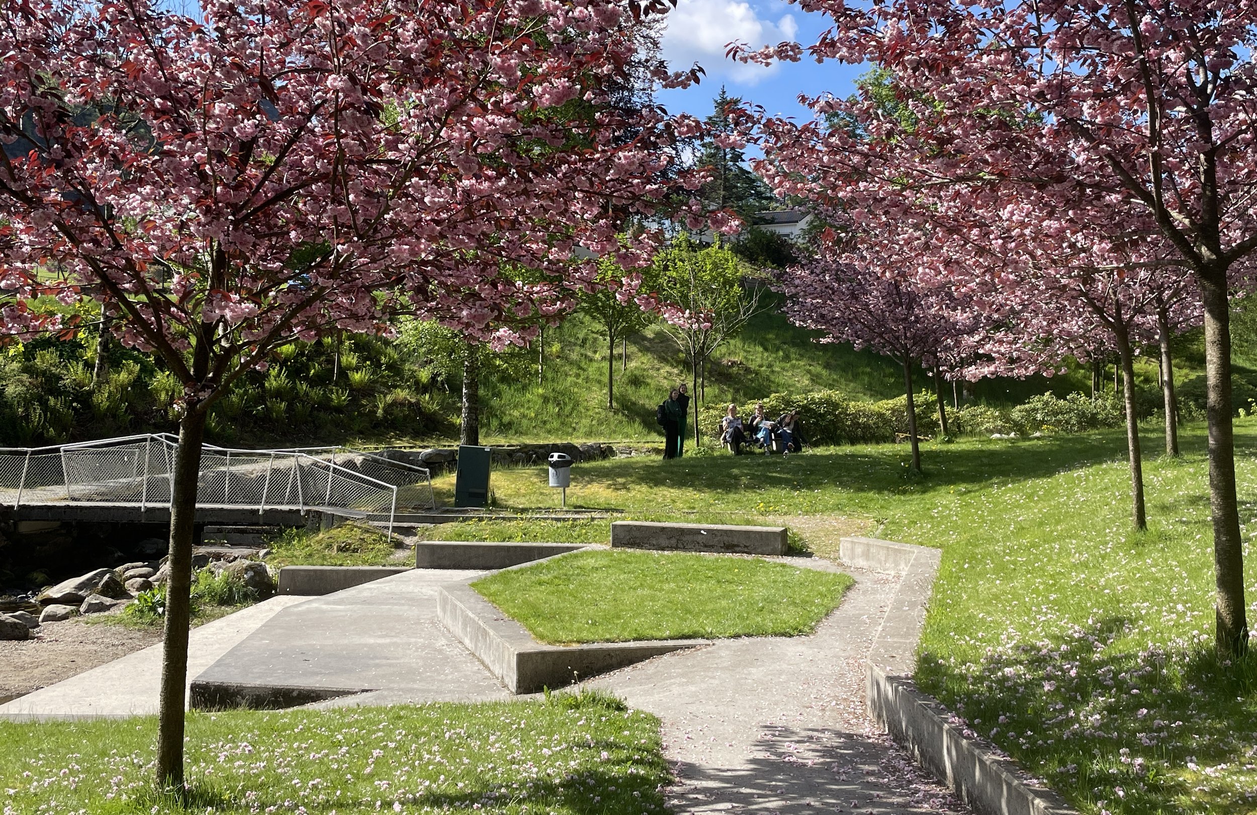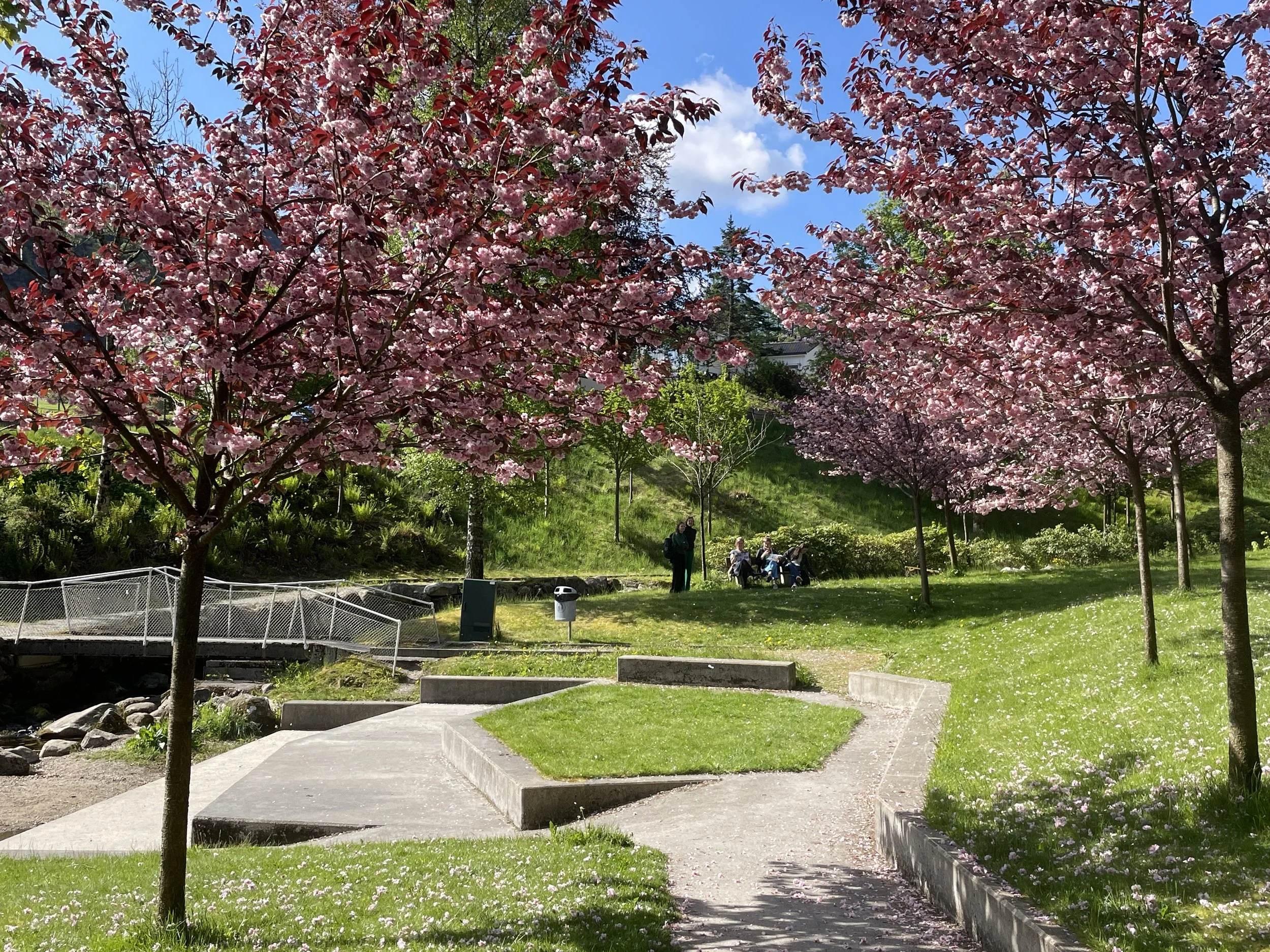 En mørk avvisende dal ble gjort om til en åpen, blomstrende, helhetlig park hvor den besøkende inviteres inn med ulike sti- og broforbindelser. Her var det viktig å gi brukeren en variert opplevelse av bekken ved å legge tilrette for allsidig og aktiv bruk. Et amfi i dalsiden og en tilhørende scene er prosjektert som et viktig lokalt samlingspunkt hvor beboere, skole og barnehage var involvert i plantingen av de mange blomstrende trærne, dette var viktig for å styrke et eierskap til parken.