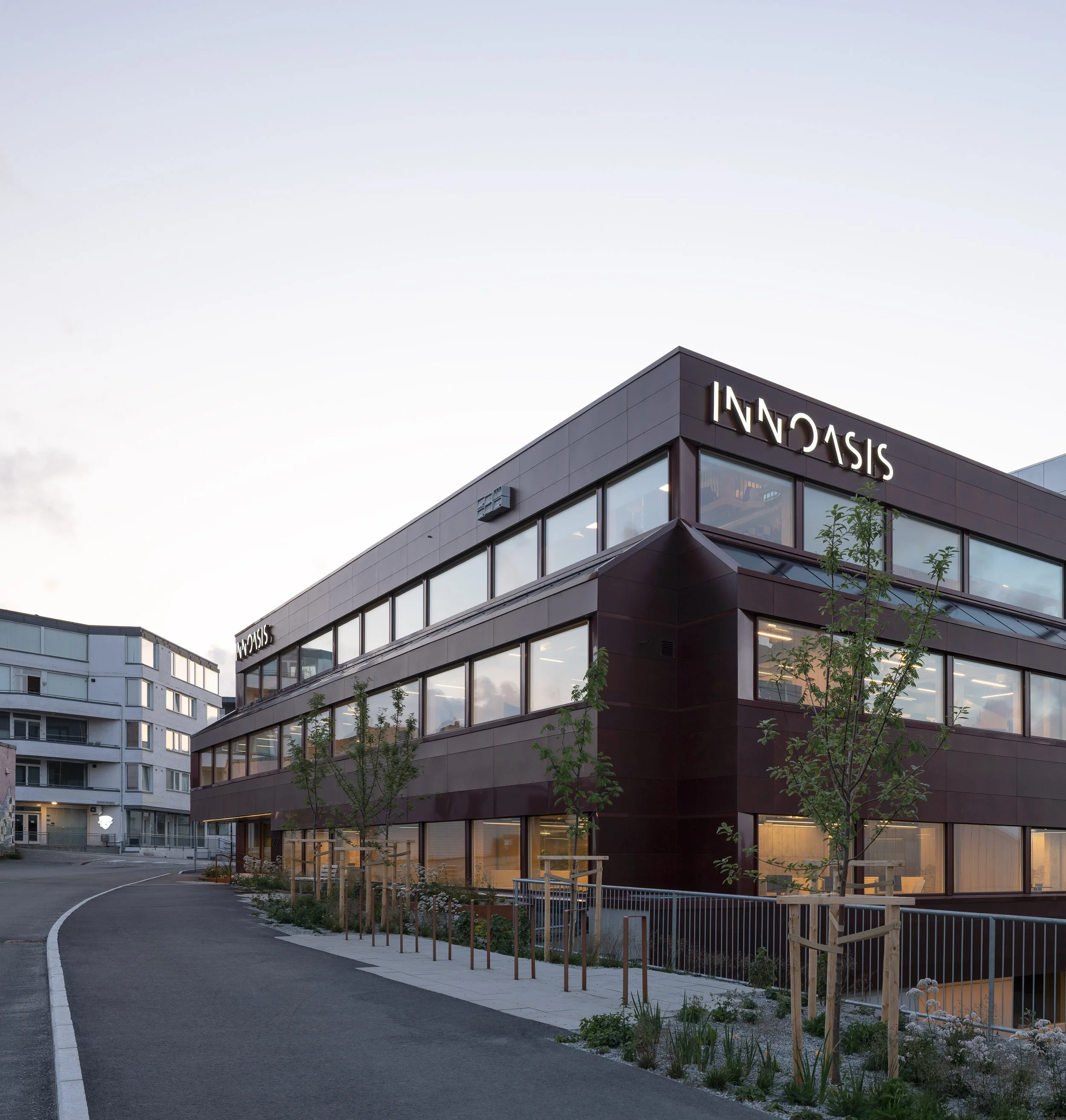 opplevelser både for dem som jobber i og besøker bygget, og dem som passerer forbi. På baksiden ble noen parkeringsplasser fjernet og erstattet med blomstereng, frodige plantefelt og sittenisjer for å koble prosjektet til et eksisterende grøntdrag med fin utsikt mot Ryfylke.