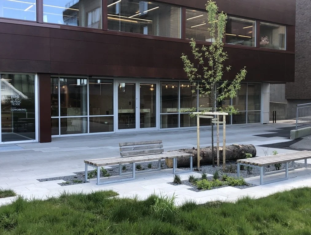 Transformasjonen av et nøkternt kontorbygg fra 1970-tallet til et levende arbeidsmiljø med kontorer, arrangementslokaler og kafé har også gitt muligheten for å gjenskape små biter Rogalandsnatur som stepping stones i den tett bebygde byen.