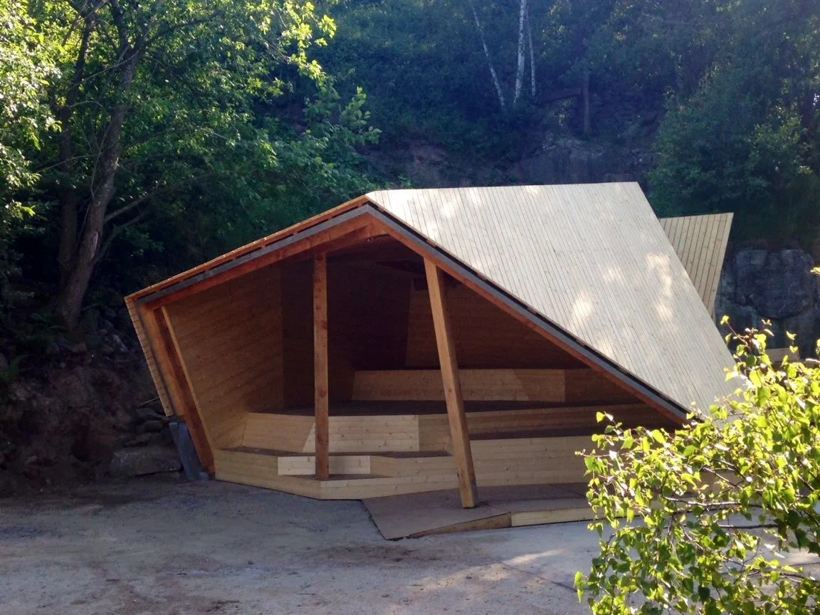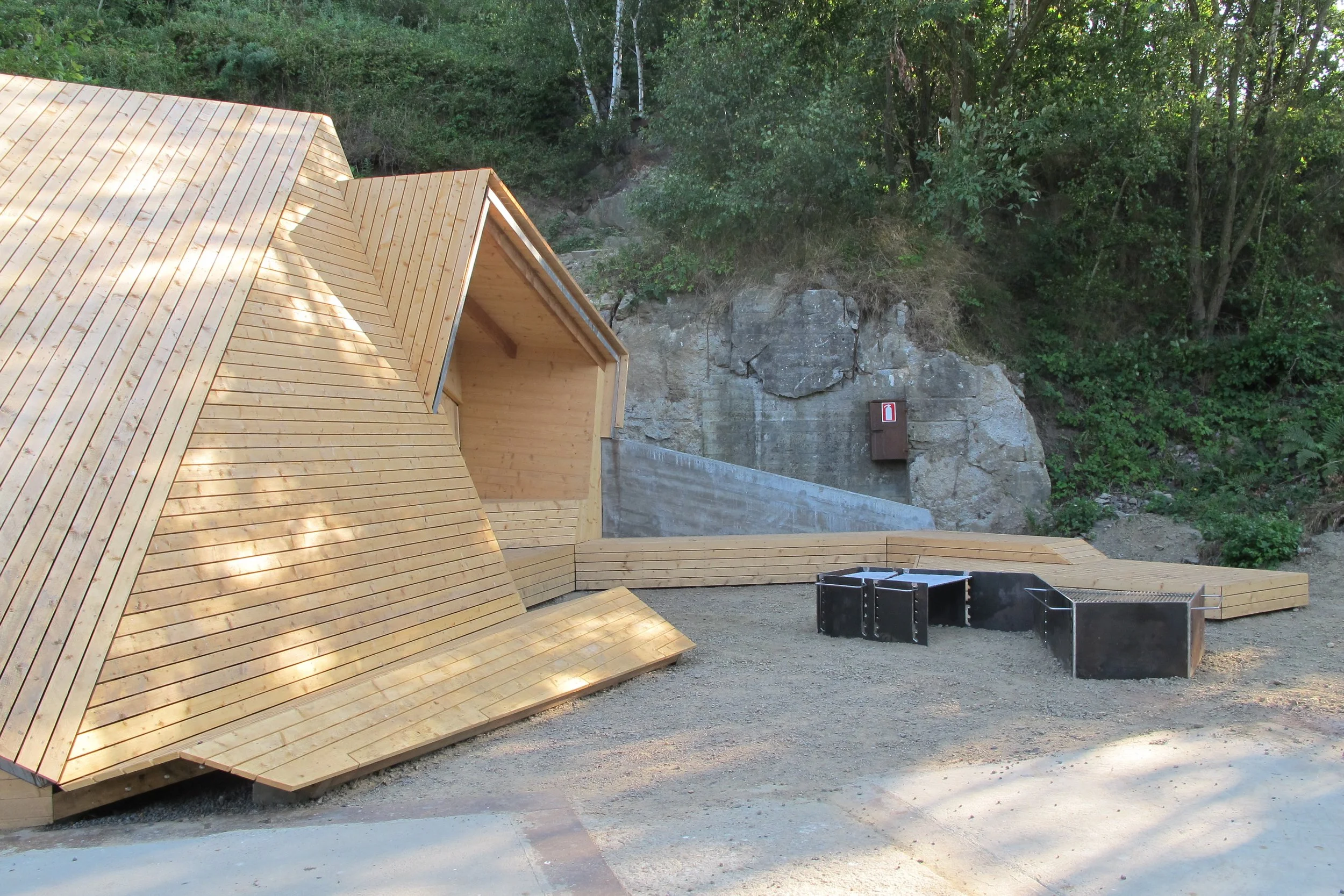 Vang granittbrudd er et naturrom som består av treflater som vinkler rundt fra ramper, dekk, nivåer, trinn til tak, fasader, utheng, rygglen og rekkverk som trekkes ut til benker og et utsiktspunkt. Skogens og landskapets myke materiale tre bearbeides i granittbruddets former, bryddinger og vinkler og definerer en romlig figur som innarbeides i overgangen mellom landskap og kulturlandskap. Formene åpner for aktivitet, opphold, pauser, formidling, overnatting og forundring.