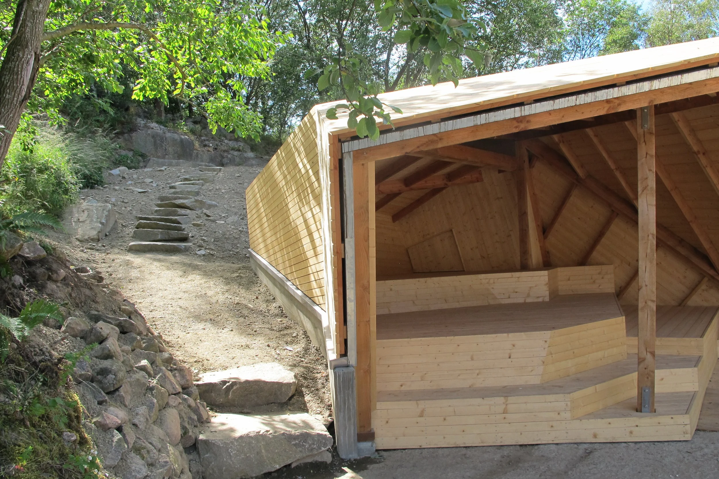 Prosjektet leder den besøkende mellom flere nivåer av forbinding ved en utstilling i de kulturhistoriske betongkonstruksjoner, mellom de dramatiske granitt veggene og i den frodige skog. Det er lagt vekt på å skape en glidende overgang mellom granittbruddets klippevegger, jorddepot, naturlig beplantning og et nedlagt industrianlegg. Materialbruken inngår i stedets prosesser, et materiale som definerer et behagelig oppholdsmiljø for vandrende, klatrere, syklister og skoleklasser. Naturrommet vil i dialog med den storslåtte natur og legge til rette for fasiliteter som understøtter nye aktiviteter og nye forståelser i det gamle steinbrudd. Prosjektet synliggjør stedets mange lag av kultur, geologi, flora, fauna, aktiviteter mm. og tydeliggjør friksjonen mellom den menneskelige påvirkning og naturens krefter. Håndtering av store vannmasser som en attraksjon og årstidsvariasjon.
